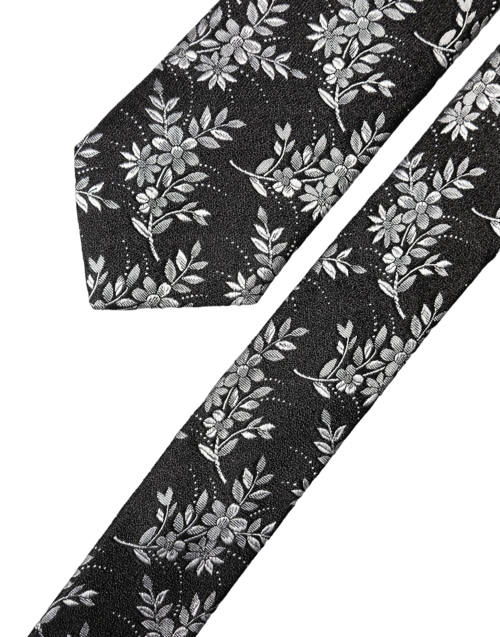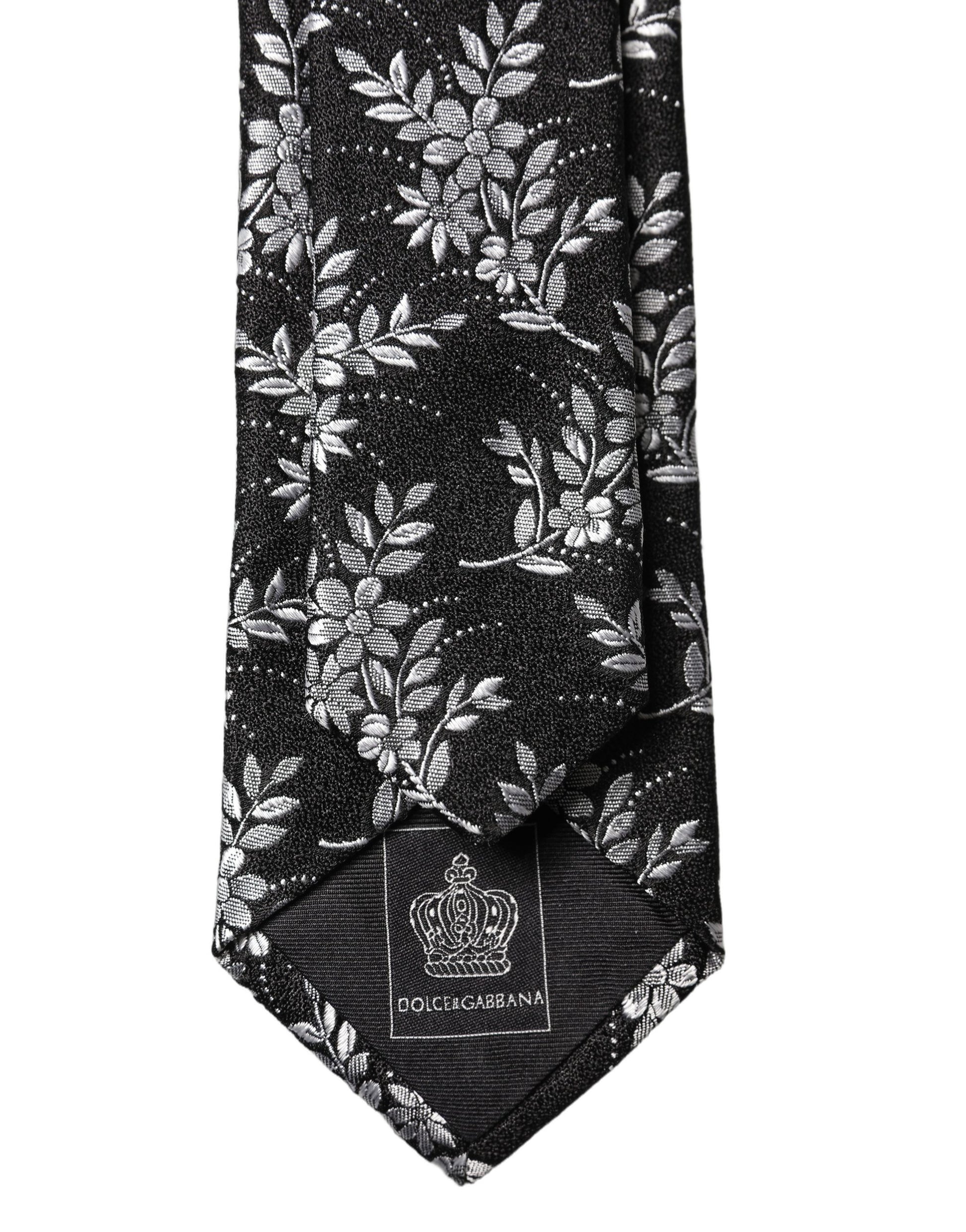 Dolce & Gabbana Black White Floral Silk Adjustable Men Tied Necktie Tie